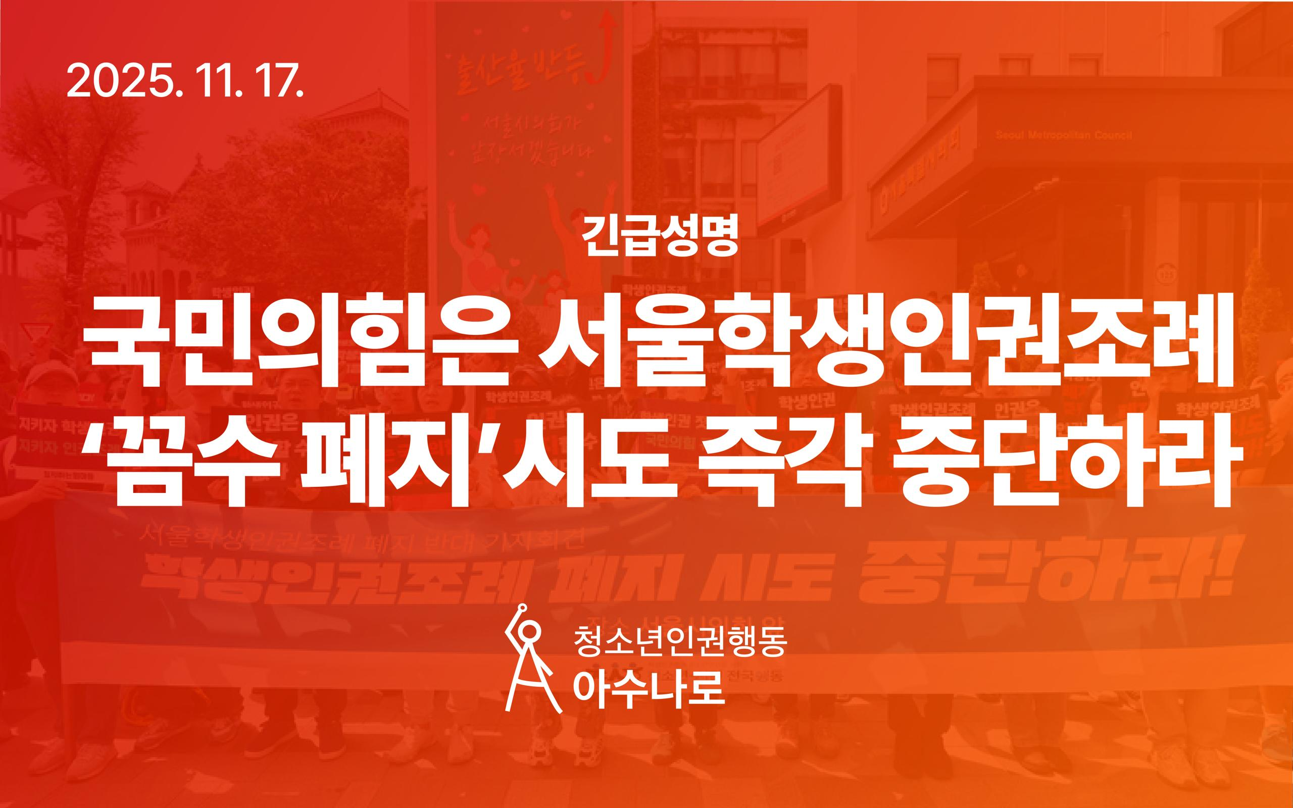 [긴급성명] 국민의힘은 서울학생인권조례 ‘꼼수 폐지’ 시도 즉각 중단하라