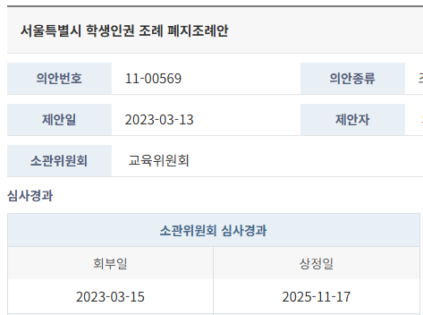 - 서울시의회는 학생인권조례폐지 주민발의안 처리 즉각 철회하라!